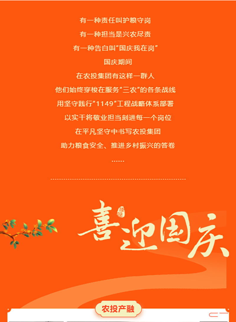 国庆我在岗 礼赞新时代丨农投产融