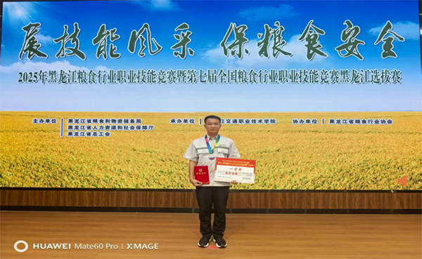 2025年,在黑龙江省粮食行业职业技能竞赛中,孙智军代表农投集团荣获2025年黑龙江省粮食行业职业技能竞赛(粮油)仓储管理员职业职工组一等奖,并代表黑龙江省参加第七届全国粮食行业职业技能竞赛,获得“优秀选手”荣誉,这是他十四年坚守与拼搏的里程碑,更是他对粮储事业热爱的生动诠释。