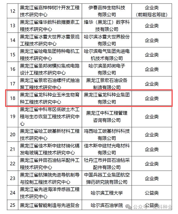 近日,黑龙江省科学技术厅公布2025年度省级工程技术研究中心备案名单,全省共32家平台入选。其中,黑龙江省龙科种业玉米生物育种工程技术研究中心成为本批次唯一聚焦玉米生物育种的专业化平台,标志着龙科种业在种业科技创新领域迈入新阶段。